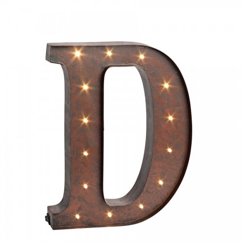 Raidės pagamintos iš metalo, "rustic" stiliaus. Tinka naudoti tik viduje. Iš nugaros pusės kabliukas kabinimui ant sienos. Šviesa palaikoma 3AA baterijomis (nekomplektuojamos). Raidės šone įmontuotas įjungti/išjungti mygtukas. Aukštis - 30 cm. Labai gražiai atrodo pastatytos ant kopetėlių, saldaus ar gėrimų stalo.