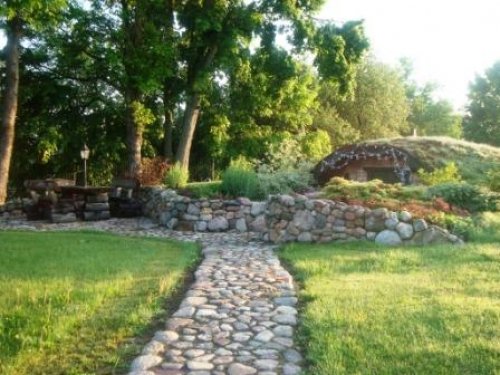 • Svečių pasitikimas sode šalia vyno rūsio, akmeninis židinys šalia ežero, pavėsinės, aukuras, kitos veiksmo vietos;