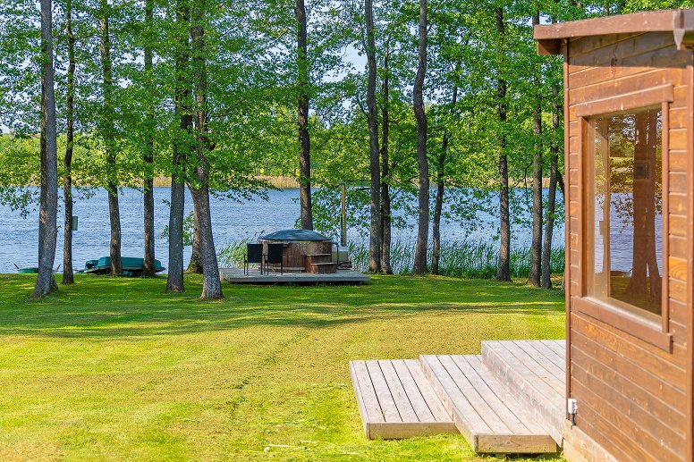 - Vila, kurioje yra 3 miegamieji kambariai (6 miegamos vietos), erdvi svetainė su židiniu (2-4 miegamos vietos), pilnai įrengta virtuvė (šaldytuvas, orkaitė, kaitlentė, indaplovė, skalbimo mašina), valgomasis, 2 dušai, 2 WC, lauko terasa su baldais. Puikus vaizdas į ežerą.