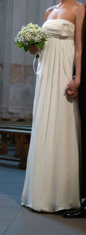 Romantiškai plėvesuojanti, šilkinė, originali vestuvinė suknelė, pasiūta remiantis Valentino modeliu. Perkant dovanojami bateliai ir tos pačios stilistikos mažas rankinukas. Už papildomą kainą galimi priedai - auskarai, apyrankė.