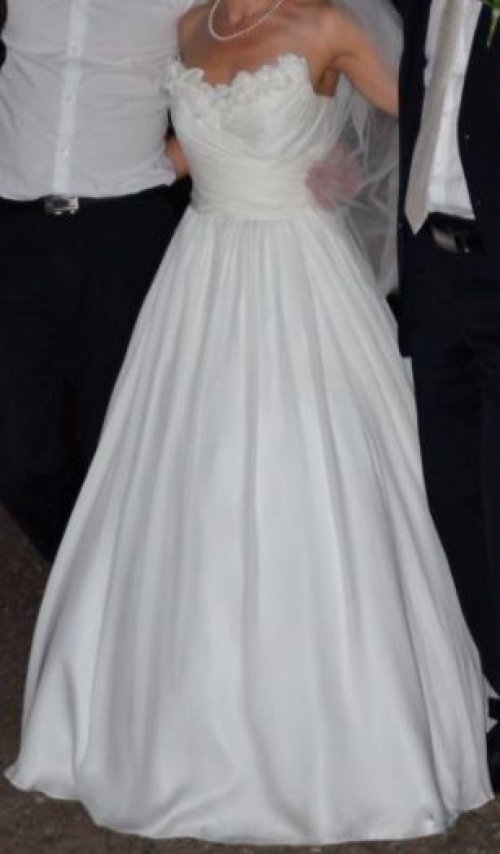 Vieną kartą dėvėta natūralaus šilko elegantiška vestuvinė suknelė.