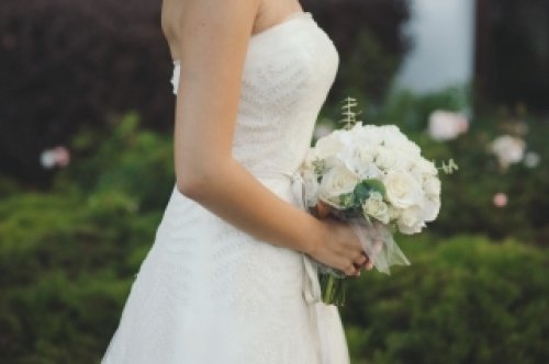 Suknelė yra įkvėpta klasikinio VERA WANG stiliaus ir pasiūta iš Organzos medžiagos. Suknelės viršus išsiuvinėtas, suknelės užpakalinėje pusėje prisiūtos net 102 sagutės, kurios elegantiškai nukloja taką iki pat nugaros. Suknelė yra labai lengva, nors pasijonis sudarytas iš daugybės tiulio sluoksnių. Kartu prie suknelės eina ir pastelinės spalvos satino dirželis. Suknelės spalva - dramblio kaulo. Ši suknelė yra 6 amerikietiško dydžio ir truputėlį dar pasiaurinta. Mano ūgis 1,67cm, prie šios suknelės dėvejau maždaug 12 cm. aukštakulnius su platforma.
